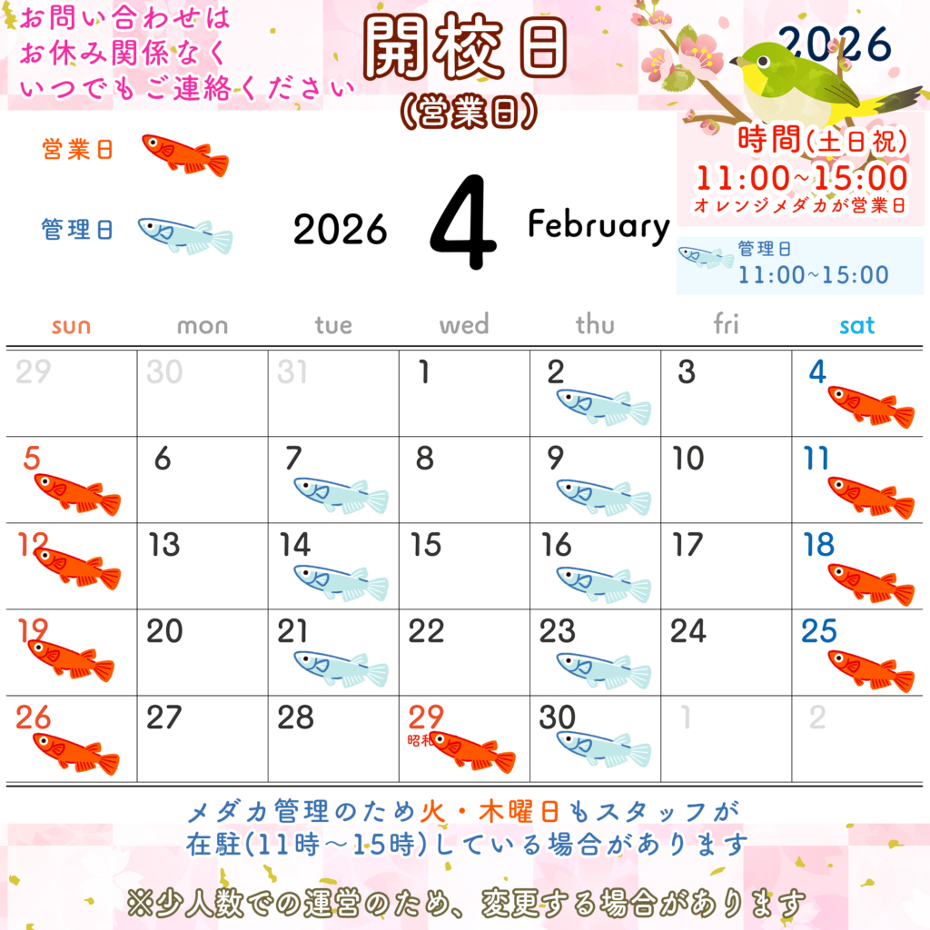 TEL: 050-7103-5546(お電話口ではメダカの学校宛とおっしゃってください。)